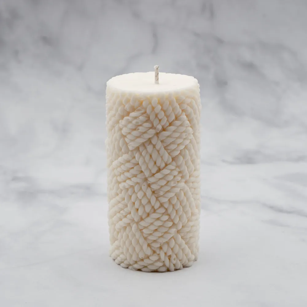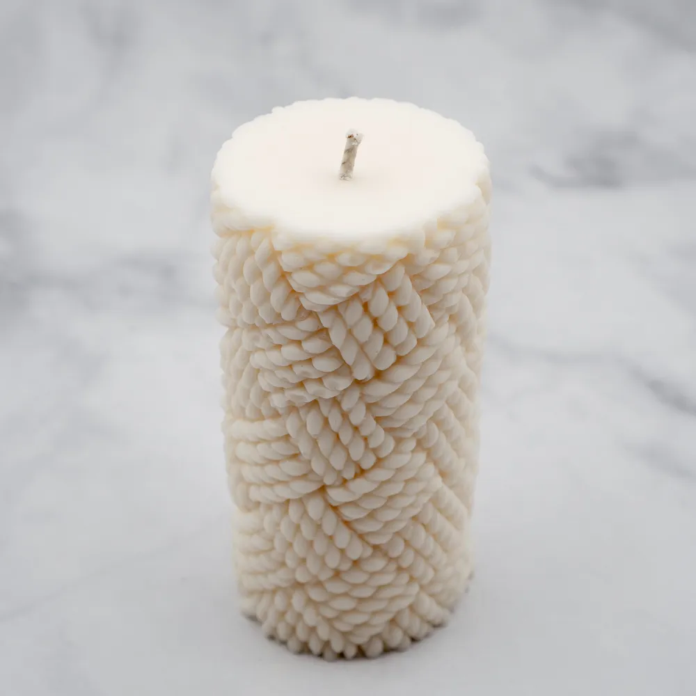Kerze mit Strickmuster aus Rapswachs